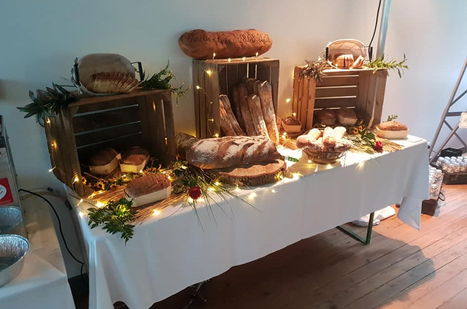 Gratin de pomme de terre à l'huile d'olive et un flan de courgette maison, servie avec un suprême de pintade farcie accompagné d'une sauce aux champignons et vin blanc.